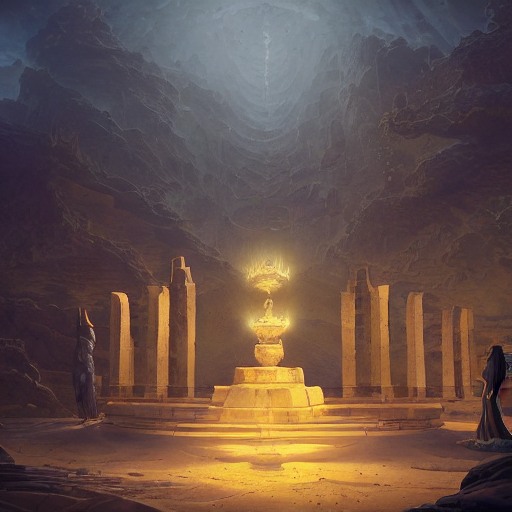 victorian ampitheater of sand, pillars with statues on top, lamps on ground, by peter mohrbacher dan mumford craig mullins nekro, cgsociety, pixiv, volumetric light, 3 d render