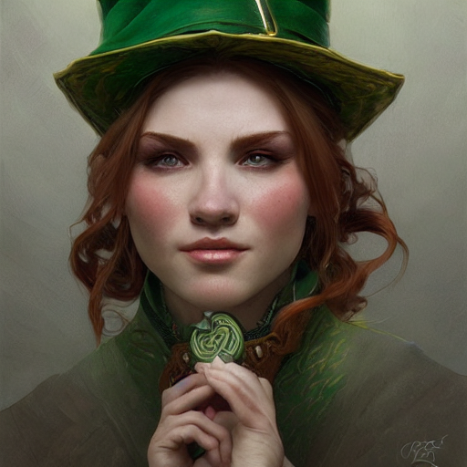 portrait of leprechaun, intricate, elegant, highly detailed, digital painting, artstation, concept art, smooth, sharp focus, illustration, art by artgerm and greg rutkowski and alphonse mucha, 8 k