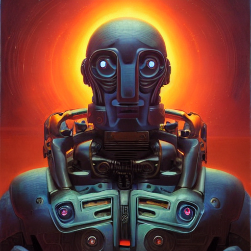 cinematic bust portrait of psychedelic robot from left, head and chest only, exotic alien features, robotic enhancements, desaturated, tim hildebrandt, wayne barlowe, bruce pennington, donato giancola, larry elmore, oil on canvas, masterpiece, trending on artstation, featured on pixiv, cinematic composition, dramatic pose, beautiful lighting, sharp, details, hyper - detailed, hd, hdr, 4 k, 8 k